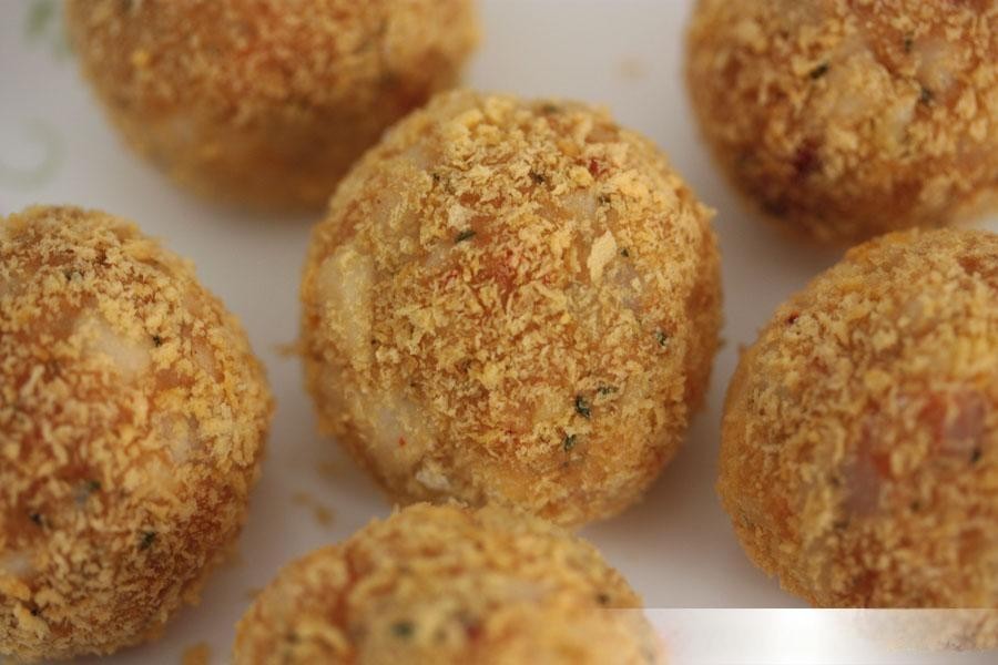 轻裹面包粉,球型的开胃菜充满美味的蟹肉。
