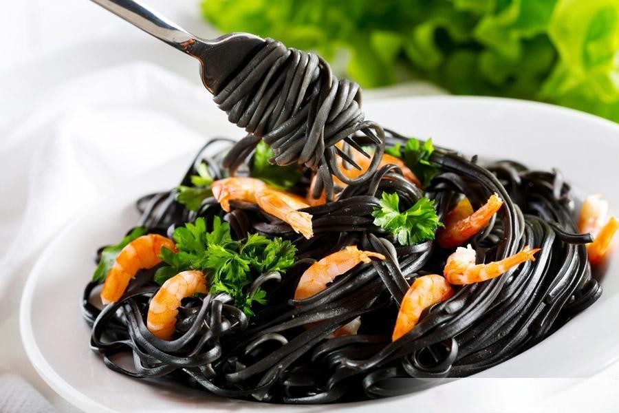 通过天然墨鱼汁赋予面条深色特征同时提升口感层次,形成独特的黑色外观与浓郁海鲜风味,是融合海洋风味与传统工艺的经典菜品。