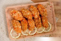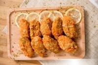 翻裹上两种不同的日本面包糠,色彩引人食欲,带来美味的爽脆口感。